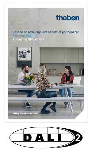 Catalogue 2024  Nouveaux thermostats programmables RAM800 top3  Solutions connectées IoT et sans fil  Coffrets câblés pour la détection de gaz  Comprendre la régulation, c'est l'adopter !  Tout connaître sur le PS005    Catalogue Theben 2023  Projecteurs LED et détecteurs de mouvement pour l'extérieur  Détecteurs de mouvement TECTA D      Catalogue THEBEN - KNX   Gestion de l‘éclairage intelligente et performante, solutions DALI-2, Autonome, BMS et KNX