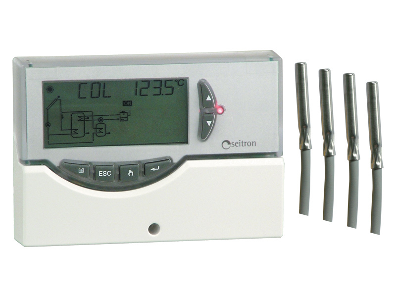 Le régulateur permet une modulation de la vitesse de une ou deux pompes solaires afin de garder un différentiel de température entre panneaux et accumulateur stable. Il est aussi possible de refroidir l'accumulateur solaire en cas de surchauffe en forçant le fonctionnement de la pompe solaire.