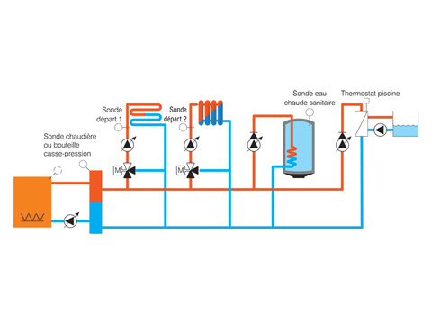 Si les coffrets câblés standard proposés ne correspondent pas à l'installation à automatiser, transmettez-nous un schéma hydraulique et vos exigences.