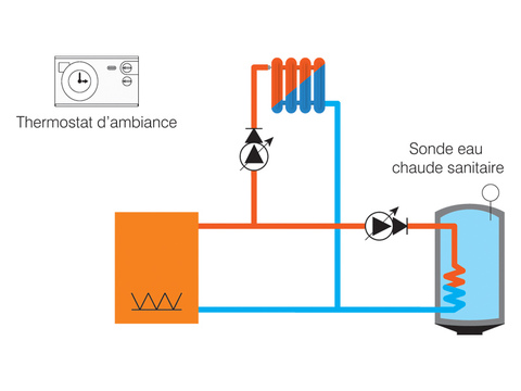 GT 005 : commande une chaudière, un circulateur chauffage et un circulateur eau chaude sanitaire