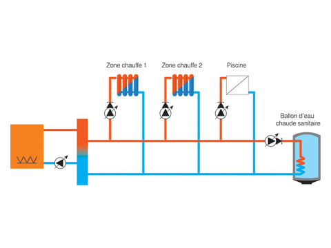 Les circuits chauffage peuvent être prioritaires ou non sur le circuit piscine.