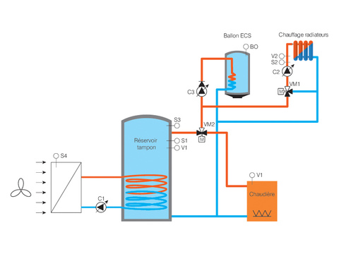Le coffret câblé GT BIO 15-2100 S est prévu pour une installation équipée d'une production de chaleur alternative, comprenant