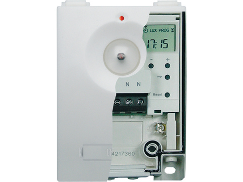 Une horloge interne permet la programmation d'une coupure de l'éclairage pendant la nuit.