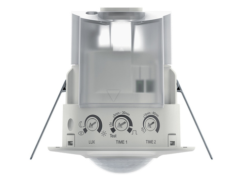 Le détecteur de mouvement LUXA 103-101 C DE WH convient pour la commande automatique de l’éclairage en fonction du mouvement et de la luminosité. Il est prévu pour un montage encastré au plafond.