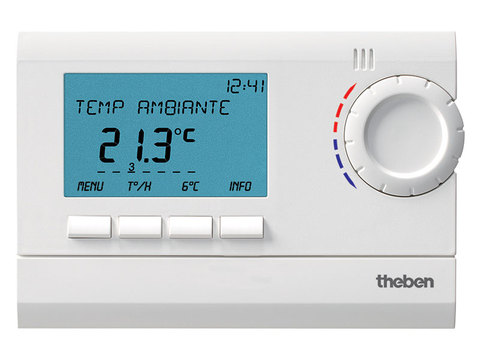 Le thermostat à horloge RAM812 top2 est un thermostat d'ambiance digital au design sobre et moderne avec un boîtier élégant, plat, de couleur blanche.