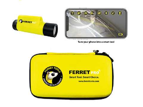 FERRET PRO est un outil d’inspection professionnel et durable de nouvelle génération pour permettre des inspections visuelles plus faciles, rapides et sûres. Il comprend un objectif à focalisation variable contrôlé par app, une charge super rapide et un adaptateur d'angle droit.