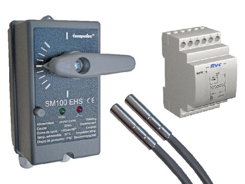Le SM100 EHS KIT convient pour la motorisation d'une vanne mélangeuse 3 voies en utilisant la température différentielle avec deux sondes connectées.