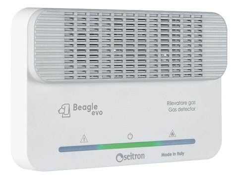 Le BEAGLE EVO LPG est un détecteur de fuites de LPG destiné à des applications domestiques, équipé d'un relais de sortie permettant de commander une électrovanne 230 V AC ou basse tension.