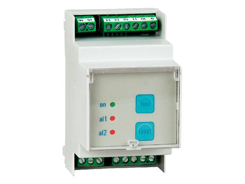 Trois témoins lumineux indiquent la mise en service, l'alarme et la préalarme.