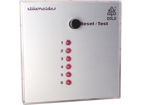 Storingsmelding voor inbouw in het frontpaneel van de elektrische kast met een centralisatie van 6 storingen volgens het ruststroomprincipe (6 rode LED's).