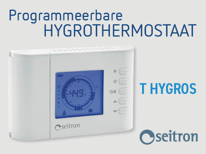 Digitale hygrothermostaat op batterijen, wekelijks programmeerbaar, ideaal voor het beheren van verwarming, koeling, bevochtiging en ontvochtiging.