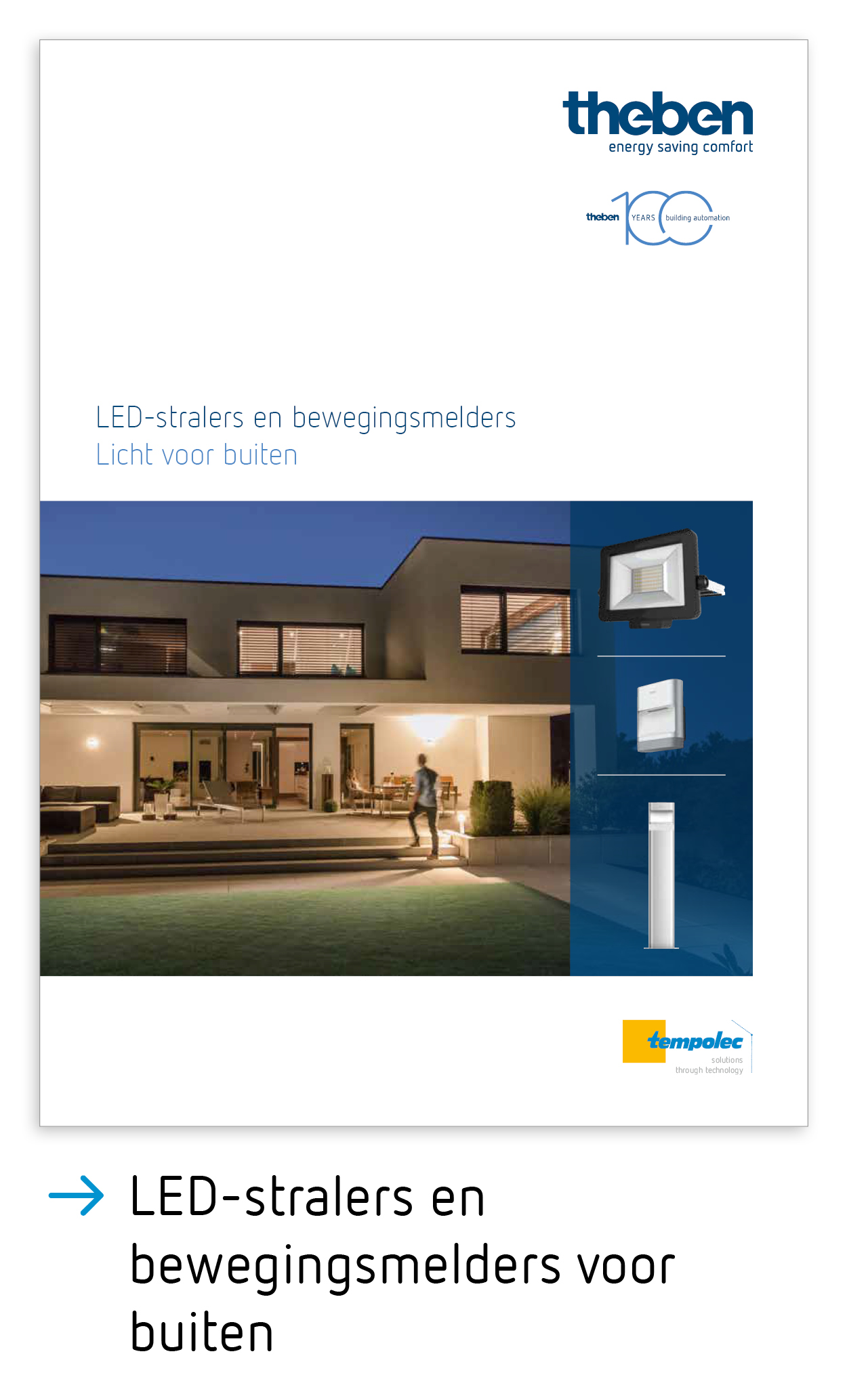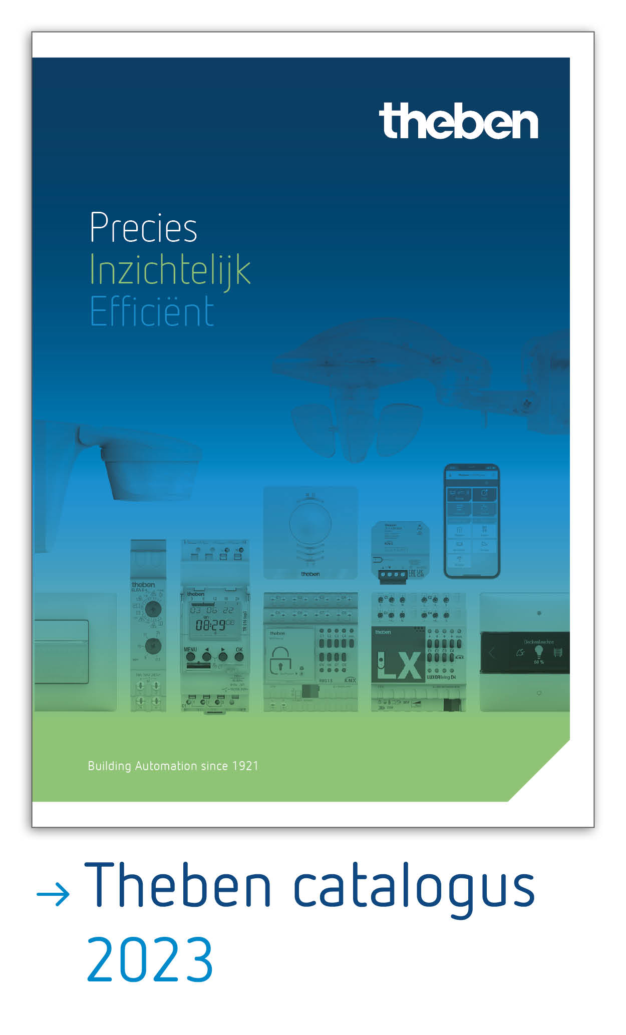 Catalogus voor de installateur  |  Ed. 09-2023  Nieuwe RAM800 top3 programmeerbare thermostaten    Bedrade schakelkasten voor gasdetectie  De handleiding voor regeltechniek !  De boilervoorrangsmodule PS005 op z'n duimpje kennen    Theben productcatalogus 2020  LED-stralers met of zonder bewegingsmelder  Bewegingsmelders voor buiten  Wanddetector theMura    Catalogus KNX | LUXORliving | DALI   Efficiënte lichtintelligentie, ruimte- en gebouwoplossingen met DALI-2 standalone, BMS & KNX