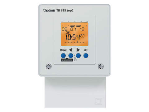 De schakelklok TR635 top2 is voorzien voor een montage op wand, DIN-rail of inbouwmontage.