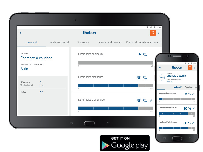 De DIMAX 544 plus kan worden geprogrammeerd via gratis app «Theben DIMAX» (Google Play Store) voor Android-smartphones.