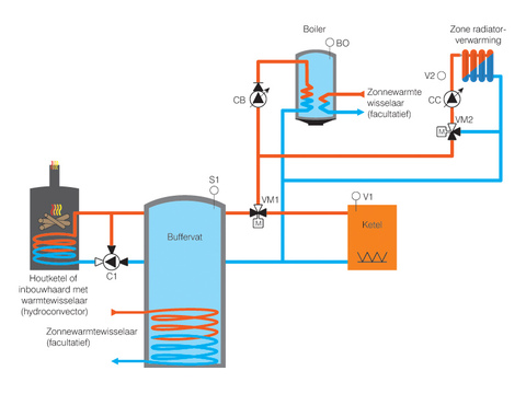 Hij is voorzien voor een eengezinsinstallatie uitgerust met een houtketel of inbouwhaard en bijv.,