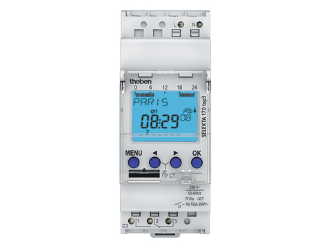 De astronomische schakelklok met weekprogramma SELEKTA 170 top3 is programmeerbaar met smartphone of tablet via app (Android & iOS) of op PC of rechtstreeks op de schakelklok.