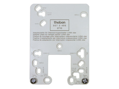 De adapterplaat vereenvoudigt de vervanging van defecte schemerschakelaars met name van de merken Eberle, ESYLUX, Legrand, Grässlin, Hager, Merten, Senmatic en Theben. De plaat is voorzien van bevestigingsgaten van de meeste gebruikelijke typen, waardoor geen nieuwe boorgaten in de voorplaat noodzakelijk zijn.