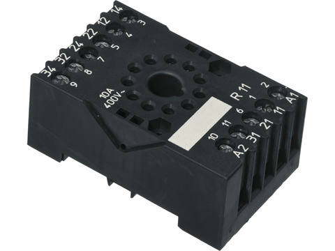 De sokkel R8 is bestemd voor een montage op DIN-rail van het hulprelais AZ169 met 3 contacten (breedte : 38 mm).