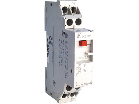 Heeft een drukknop voor manuele bediening van de contacten en voor weergave van de schakelstand.