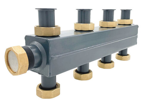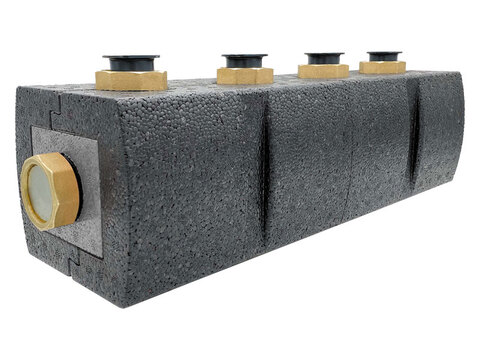 De lage differentiële druk verwarmingscircuitverdeler ontkoppelt hydraulisch het primaire circuit van het secundaire circuit.