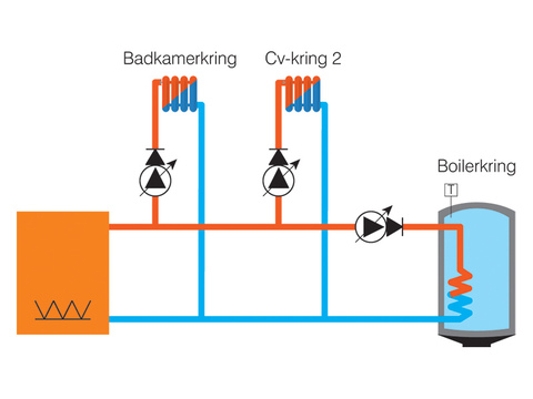– of badkamerverwarming ten opzichte van de tweede cv-kring.