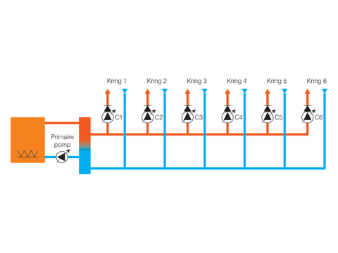 Het universele multizone-programma PS666 is geschikt voor sturing van 6 secundaire pompen (verwarming, sanitair warm water, zwembad, enz.), een ketel met 1- of 2-trapsbrander en een primaire pomp.