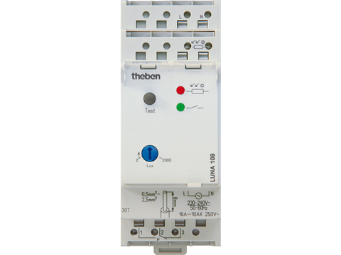 De schemerschakelaar LUNA 109 is voorzien voor wand- of DIN-railmontage, breedte : 2 modules.